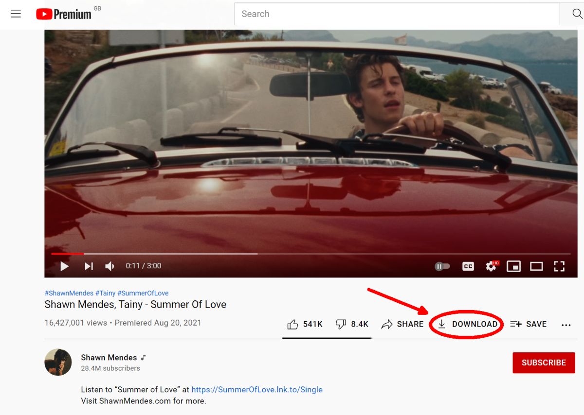 Once the feature is turned on, any YouTube video you watch on your computer’s browser, will include a “Download” button –